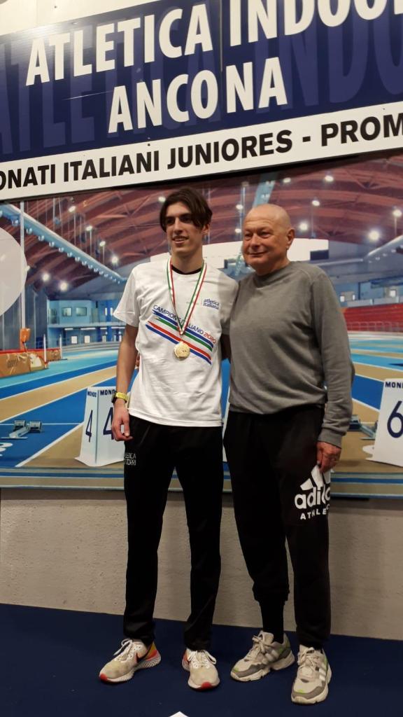 ANCONA- Spettacolare la prima giornata dei campionati italiani indoor junior e promesse per la 100 torri, che si conclude con due titoli italiani , il primo è di Andrea Sambruna nei 1500m il quale partiva con il settimo accredito; la gara si presenta tutt’altro che semplice con andrea che la gestisce altalenando tra la quarta e sesta posizione, befferà poi gli avversari nell’ultimo giro con un lanciato che lo porterà a vincere la medaglia d’oro con il crono di 3’56″83 ( primato personale assoluto, aveva 3’57″52), questa vittoria rappresenta per andrea allenato da Achille Fecchio, il terzo titolo italiano , il primo lo vinse da allievo nei 1000m a Cles nel 2016 il secondo invece negli 800m sempre da allievo in occasione dei campionati italia a Rieti nel 2018 con il crono di 1’57″58.